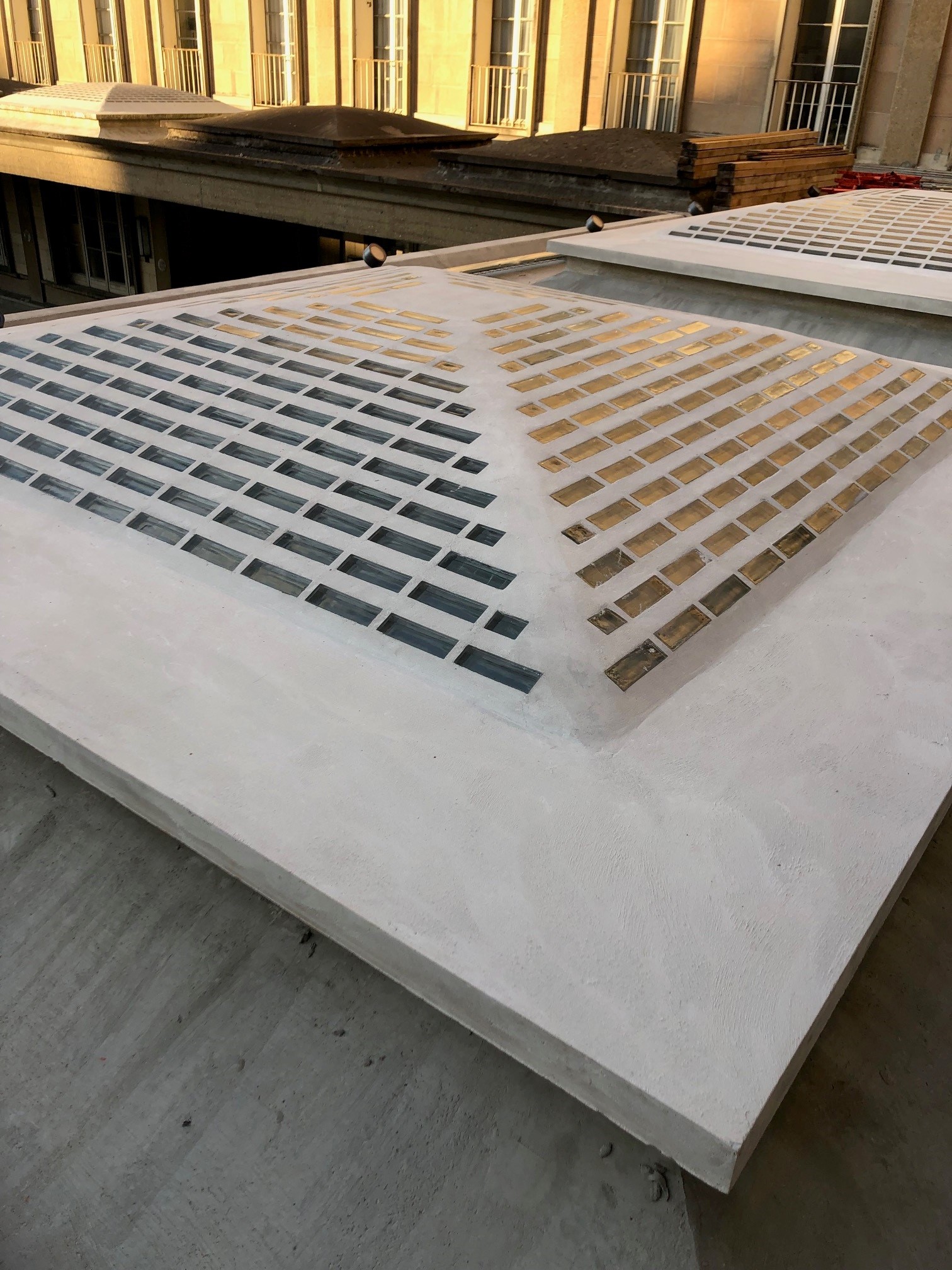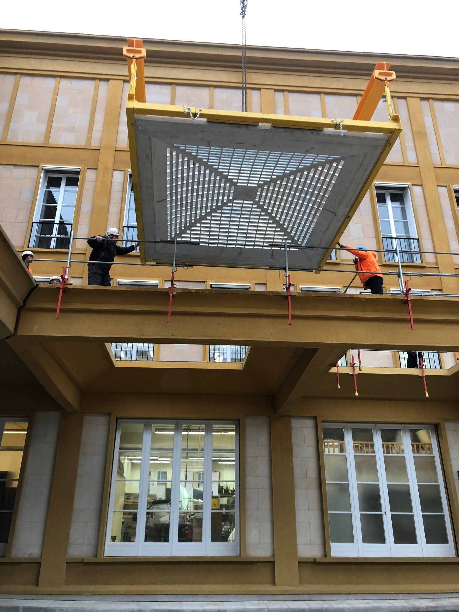 – Une première opération , débutée en 2017 et réceptionnée en août 2021, a consisté à restaurer les façades intérieures et les pavillons d’entrée. Les marquises ont été remplacé selon leurs dispositions d’origine, avec leurs barrettes de verre très particulières.