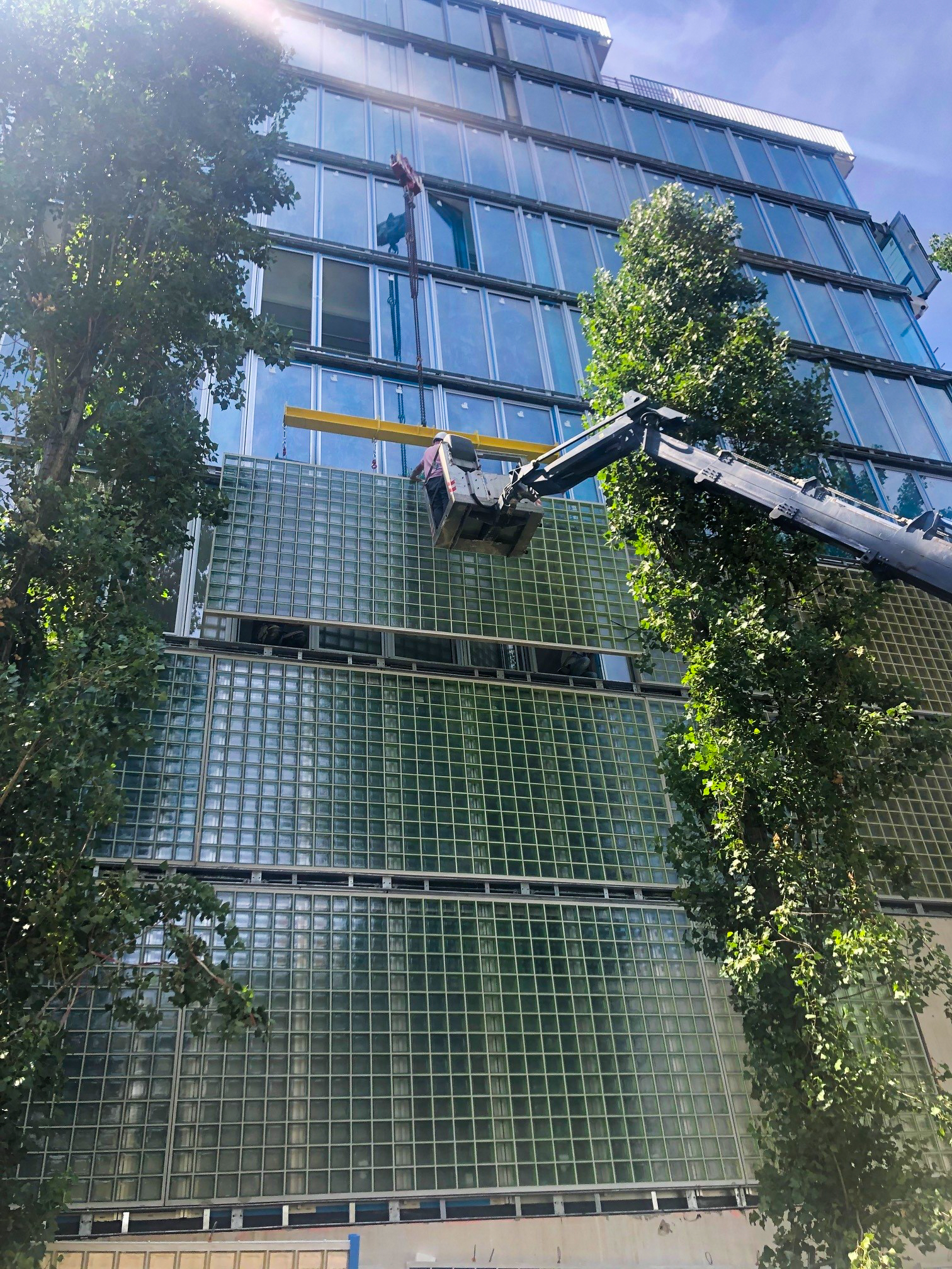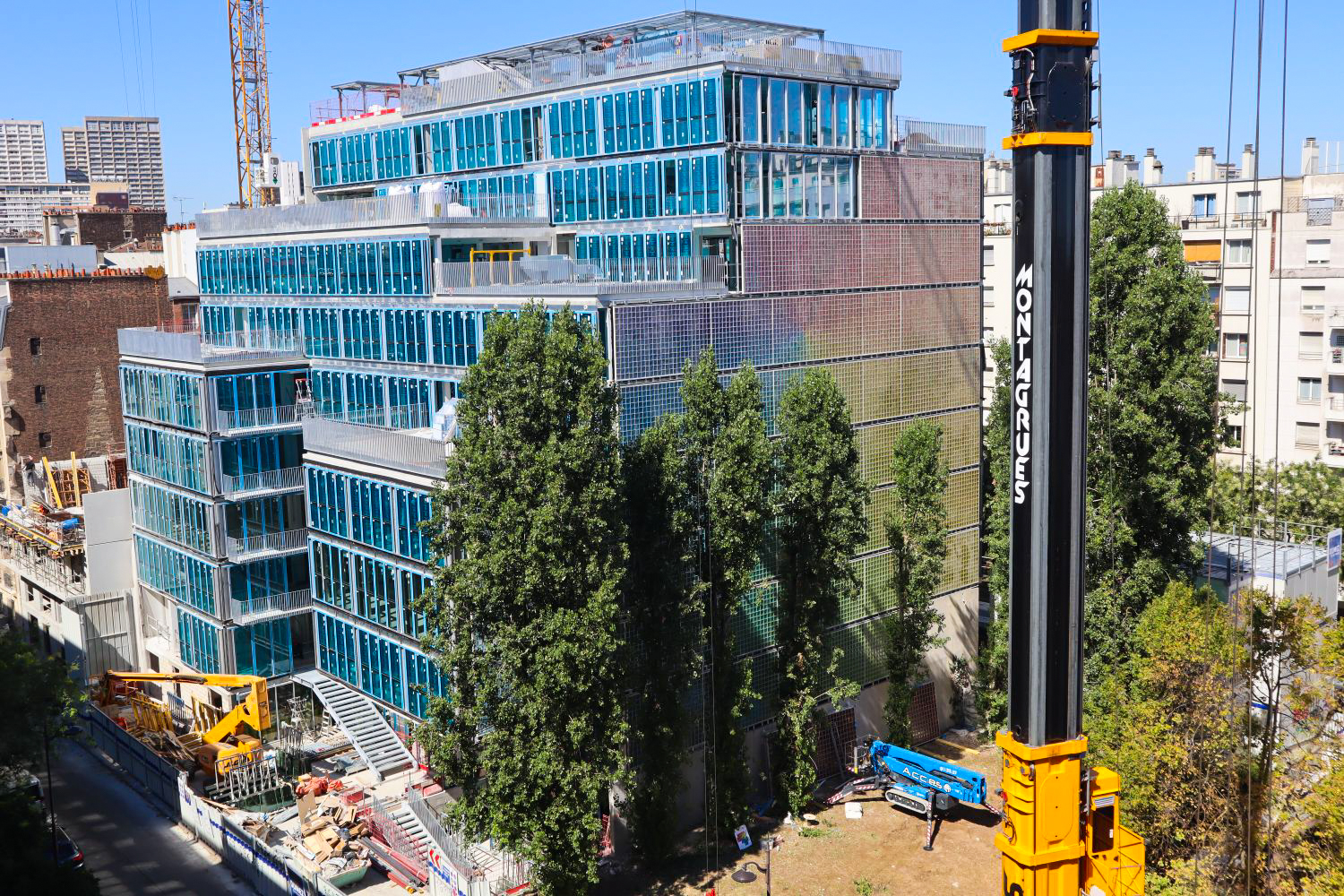 - Technique & préfabrication : l’utilisation de panneaux préfabriqués par Saverbat a permis une pose précise et sécurisée sur les 9 niveaux de ce mur mitoyen, assurant une finition haut de gamme indispensable pour une réalisation de cette envergure.